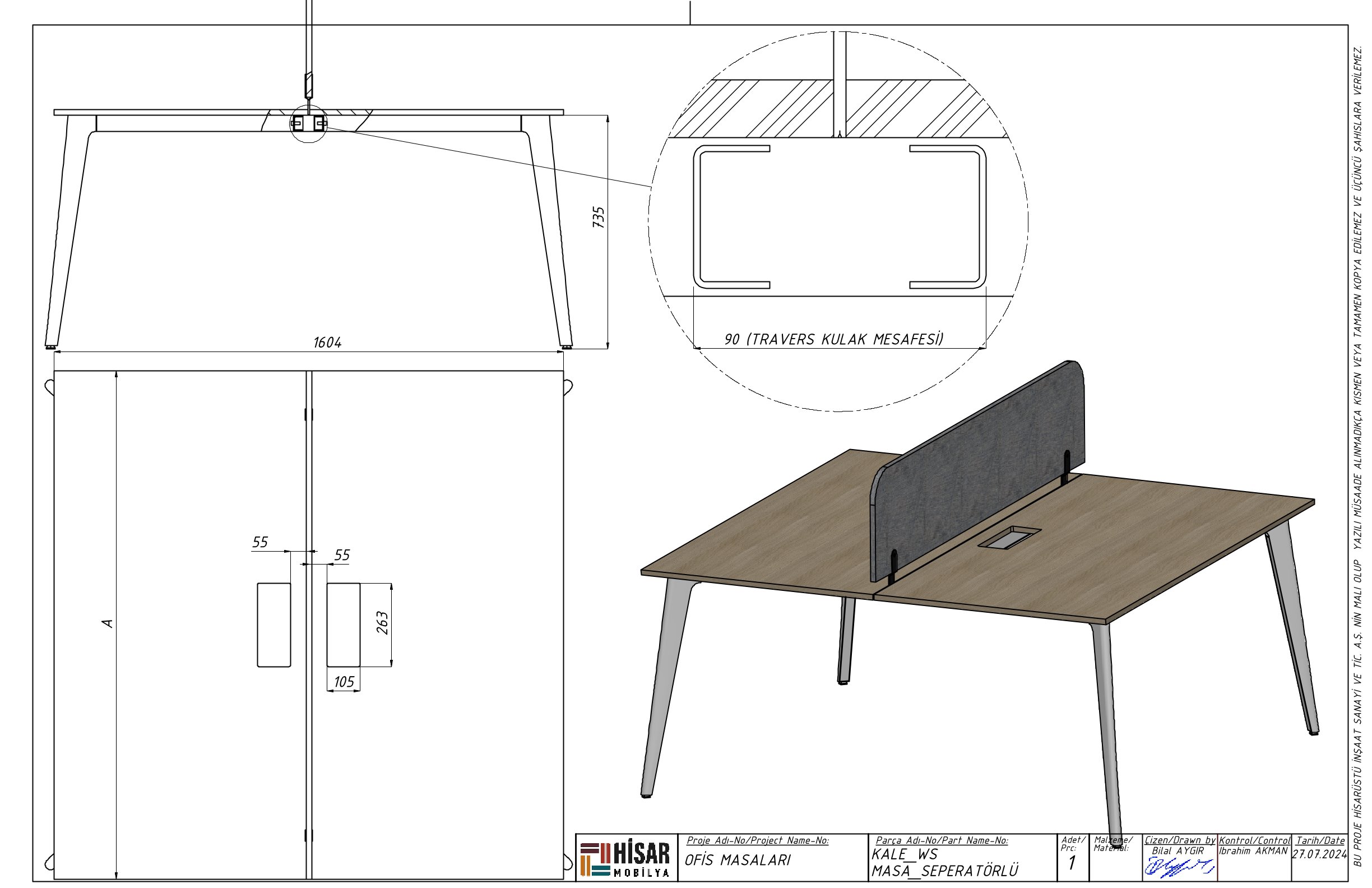 Work Station İkili Masa Kale Ayak